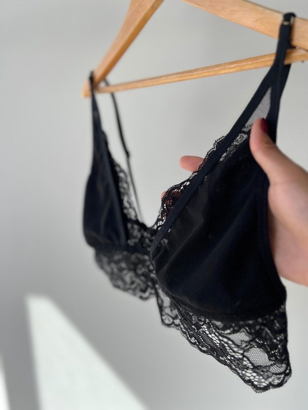 Bralette triangular con 3 capas superpuestas en copa que simulan un escote con encaje.